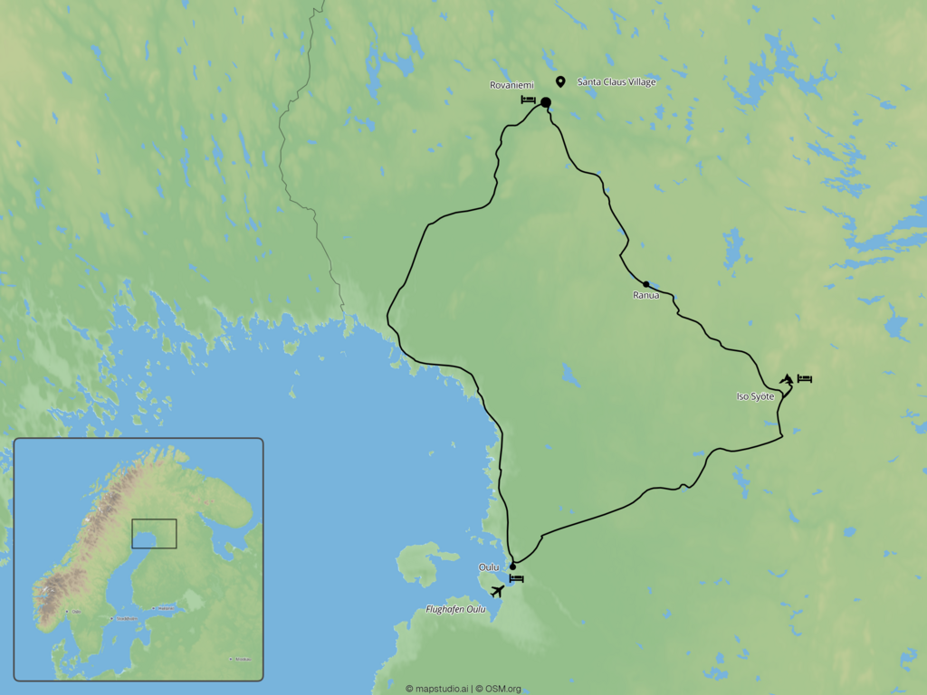 Eine unvergessliche Reise ins Herz von Finnisch-Lappland: Diese Mietwagenreise gibt Ihnen die Freiheit, unberührte Wildnis, charmante Kleinstädte und besondere Unterkünfte ganz nach Ihrem eigenen Tempo zu entdecken. Von der arktischen Magie Rovaniemis bis zum Ranua Wildlife Park erwarten Sie intensive Naturerlebnisse, spannende Outdoor-Abenteuer und einzigartige Übernachtungen, darunter die berühmten Glas-Iglus. Erkunden Sie Lapplands Landschaften selbst und lassen Sie sich von der Ruhe, den Weiten und der faszinierenden Kultur des hohen Nordens verzaubern.