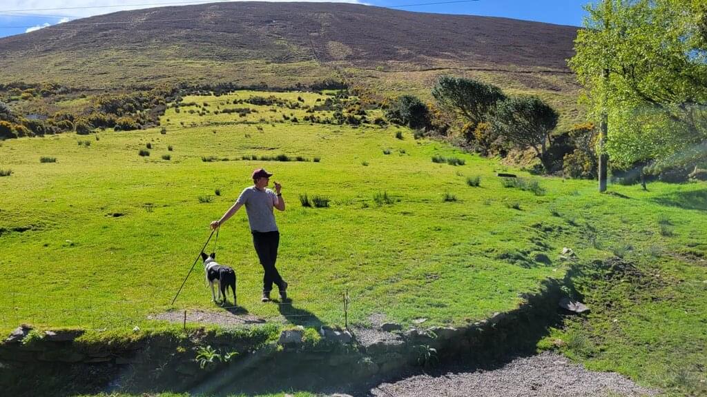 <Abreise nach dem Frühstück mit dem öffentlichen Bus vom Dorf Glenbeigh.