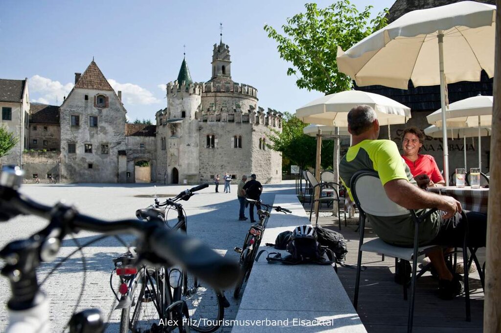 <Heute radeln Sie kurz vor Brixen an der Klosteranlage von Neustift oder der Festung Franzensfeste vorbei, die beide zu einer Besichtigung einladen.. In Brixen lohnt sich ein Rundgang durch die gepflegte Altstadt mit Lauben und Dom. Von weitem werden Sie vom Kloster Säben begrüßt, welches hoch oben über Klausen und immer dem Eisack entlang radeln Sie nach Waidbruck, wo sich Ihnen der Blick zur Trostburg eröffnet. Hier wird das Tal enger und führt Sie in den Bozner Talkessel und Ihrem heutigen Etappenziel, der Landeshauptstadt Bozen, die Stadt in der sich zwei Kulturen begegnen.Es bieten sich Ihnen zahlreiche Möglichkeiten zur Gestaltung des Nachmittags gemütliches Flanieren unter den Bozner Lauben oder auf den Talferwiesen, Besuch beim „Ötzi“, dem „ältesten Tiroler“ im Archäologiemuseum,einfach nur einen Cappuccino in einem der zahlreichen Cafés am Waltherplatz genießen.