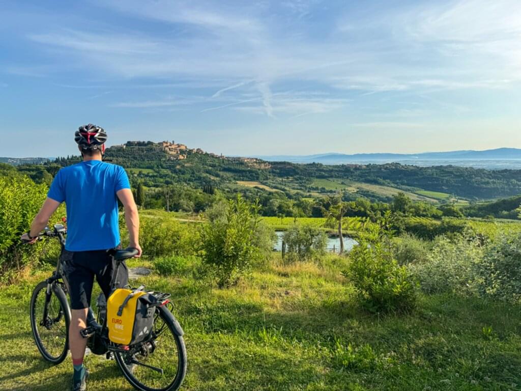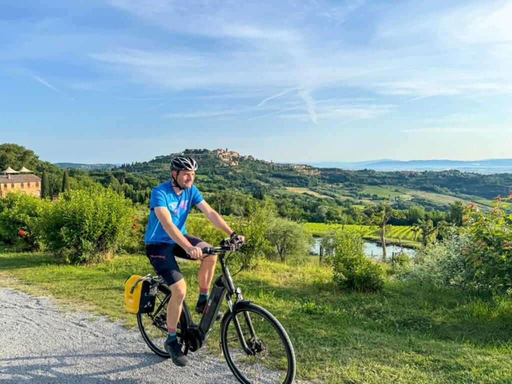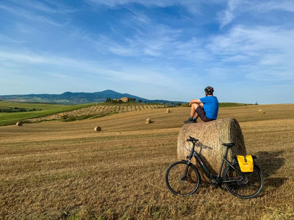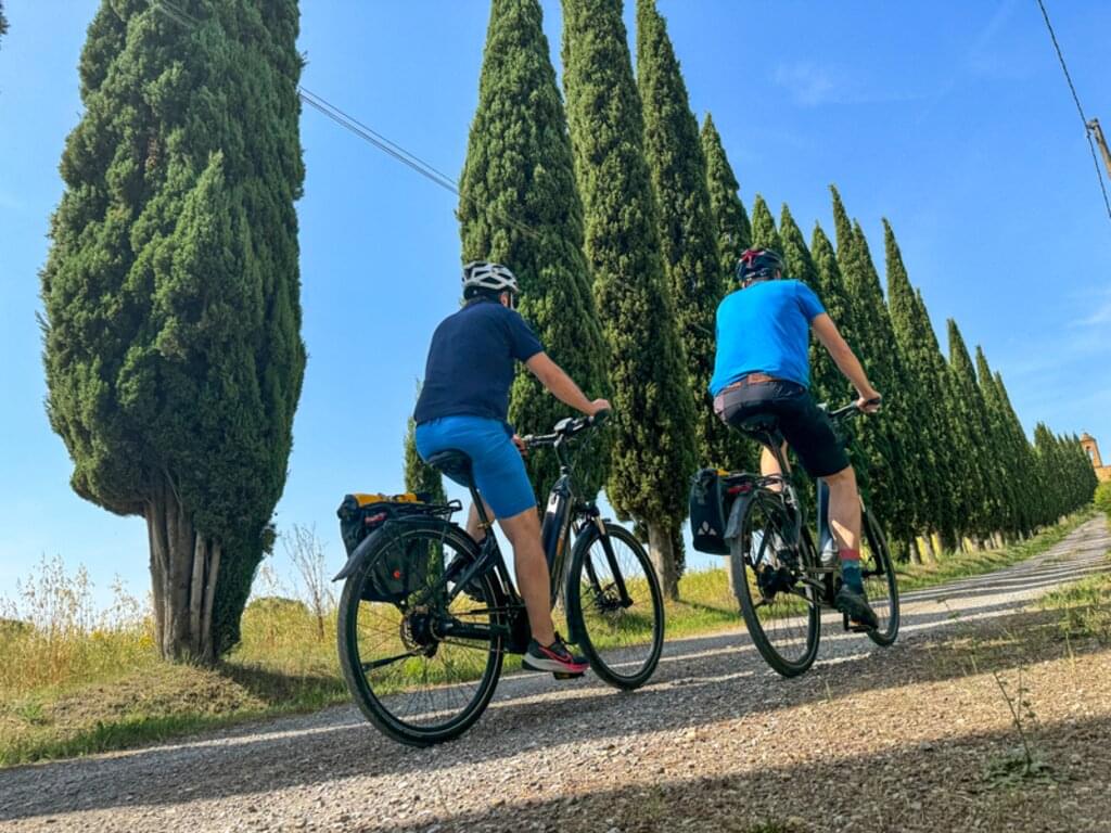 <Durch eine von Zypressen gesäumte Serpentinenstraße radeln Sie auf das authentische Festungsdorf Montechiello zu. Die weißen Straßen „Strade Bianche“ führen in die Renaissancestadt Pienza, auch berühmt als Filmkulisse für Hollywoods „Gladiator“. Die Bilderbuchlandschaft des Val d´Orcia begleitet Sie am Weg nach Montalcino. Hier wird wohl einer der bekanntesten Rotweine Italiens, der Brunello, mit Leidenschaft gekeltert. Probieren Sie diesen edlen Tropfen in einer der vielen Vinotheken.