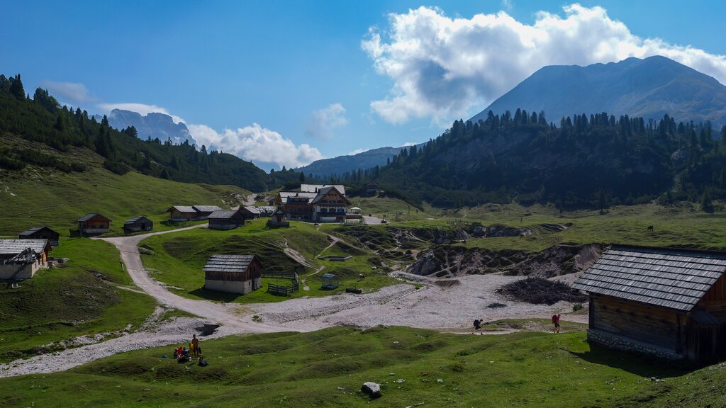 <Abstieg zum Rifugio Pederü (1543 m), dann auf einer ebenso einfachen Strecke hinauf zum Rifugio Fanes. Kurzer Anstieg zum Passo Limo (2174 m) und Überquerung der großen Alpe di Fanes über den Passo Tadega (2157 m) und den Col de Locia (2069 m), flankiert vom Monte Cavallo (2912 m) und den Dents de Cunturines (3017 m). Abstieg zur Capanna Alpina, bevor der letzte Aufstieg Sie zum wunderschönen Rifugio Scotoni (1985 m) führt, das Sie in traumhafter Lage erwartet.