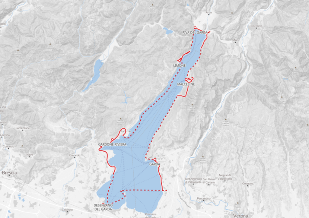 <Auf dem Promenadenweg an der Bucht von Salò gemütlich in den winzigen mittelalterlichen Ort Cisano und weiter durch traumhafte Olivenhaine nach San Felice. Vorbei an Feriensiedlungen und einladenden Stränden gelangen Sie zur felsigen Halbinsel von Manerba. Eindrucksvoll thront das Kreuz hoch auf dem Felsen. Sandige Pfade führen Sie direkt an den Steilklippen rund um die Halbinsel zum idyllischen kleinen Hafen von Dusano. Per Schiff erreichen Sie Ihren Übernachtungsort.