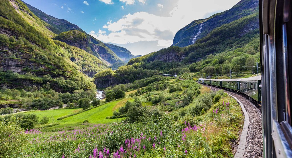 <Ihre Zugreise beginnt heute! Begeben Sie sich auf die 2 schönsten Bahnstrecken des Landes. Beginnen Sie in Oslo mit der Bergensbanen nach Myrdal und nehmen Sie nach einem kurzen Umstieg die berühmte Flåmsbana. Dieser Zug ist weltberühmt für seine atemberaubende Landschaft, die sich entlang steiler Klippen und vorbei an prachtvollen Wasserfällen schlängelt. Ein aufregender erster Tag! Übernachten Sie für zwei Nächte in dem charmanten Fjorddorf Flåm.