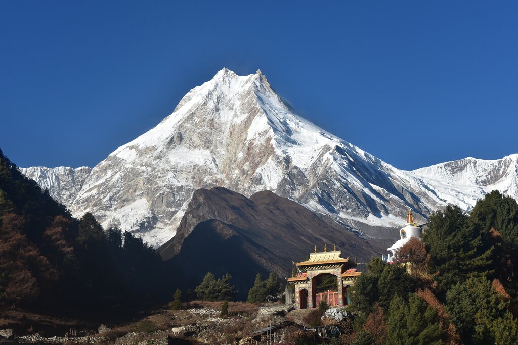 Der Manaslu Circuit Trek bietet ein einzigartiges Abenteuer abseits der ausgetretenen Pfade in der Himalaya-Region, 40 Meilen östlich von Kathmandu. Er ist bekannt für seine kleinen Teehäuser und beginnt am Macha Khola und führt zum spektakulären Larkya La Pass (5.106 m), von dem aus man einen atemberaubenden Blick auf den Manaslu und den Ganesh Himal hat. Dieser geografisch abwechslungsreiche Trek erkundet das Manaslu-Schutzgebiet, das von subtropischen Ausläufern bis zu transhimalayischen Weiden an der Grenze zu Tibet reicht. Sie zeigt die harmonische Mischung aus Natur und lokaler Lebensweise und belohnt Wanderer mit versteckten Juwelen wie den Tälern Nubri und Tsum. Die Reise enthüllt üppige Wälder, alte Architektur und buddhistische Klöster, die die kulturellen Verbindungen mit Tibet widerspiegeln. Der Manaslu wird von den Ethnien der Tsum und Nubri bewohnt, die ihre reiche Kultur und Geschichte teilen. Insgesamt verspricht die Wanderung ein fesselndes Naturerlebnis und kulturelles Eintauchen.