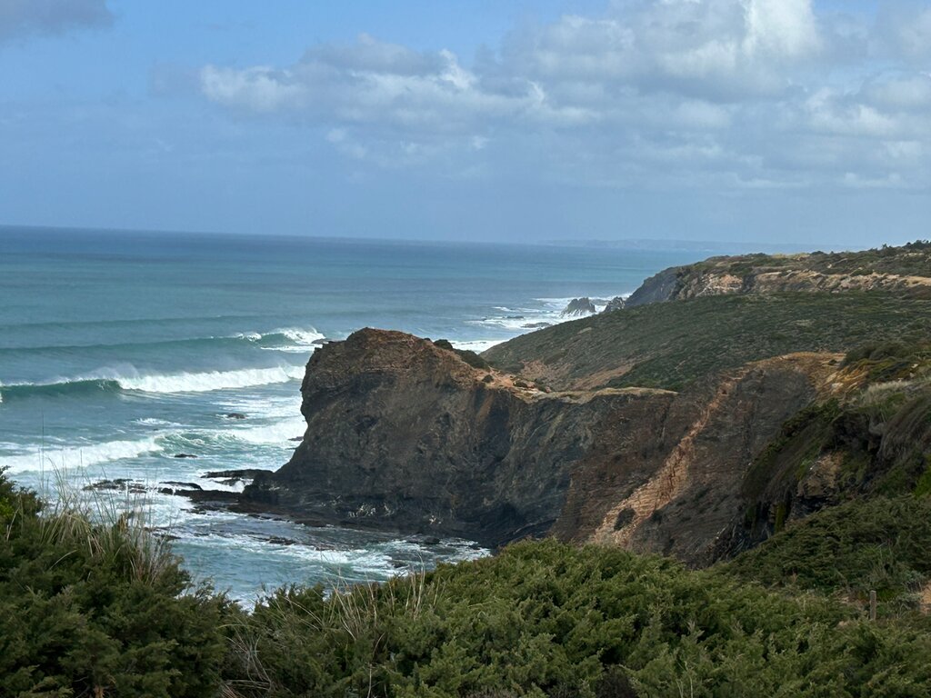 <Heute wechseln wir zurück an die Küste und erwandern einen der schönsten Abschnitte des Fischerpfads. In leichtem Auf und Ab folgt der Weg der wilden Atlantikküste mit ihren steilen Klippen, tiefblauen Buchten und versteckten Sandstränden. Das Rauschen des Ozeans begleitet uns den ganzen Tag, und immer wieder laden kleine Strände zu kurzen Pausen ein. Die Etappe endet in Odeceixe, einem malerischen Ort an der Mündung des Seixe Flusses, umgeben von grünen Hügeln. Hier kannst du in gemütlichen Cafés oder Restaurants die portugiesische Küche genießen und den Wandertag entspannt ausklingen lassen.