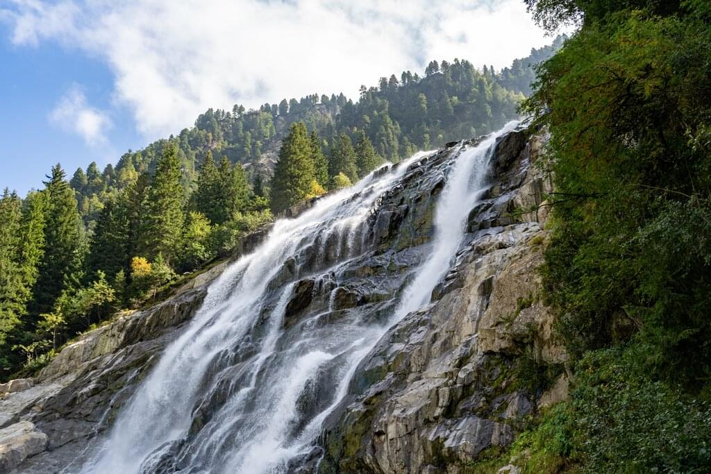 <Am Morgen bringt dich eine kurze Fahrt mit den öffentlichen Verkehrsmitteln zum Marend Stüberl, wo deine heutige Wanderung entlang der Ruetz beginnt. Das erste Highlight ist der beeindruckende Grawa Wasserfall, der am Ende des "Wilde Wasser Wegs" auf dich wartet. Hier kannst du das Schauspiel der tosenden Wassermassen genießen, bevor du weiter zur idyllischen Sulzenaualm aufsteigst. Nach einer gemütlichen Pause auf der Alm trittst du den Rückweg ins Tal an und kehrst entspannt mit den öffentlichen Verkehrsmitteln zur Unterkunft zurück.