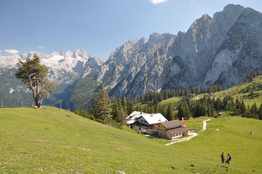 <Die heutige Wanderung führt sehr nah ans Hochgebirge heran, ist sehr lang und ungemein aussichtsreich. Über die Schartenalm mit vielen alten Heustadeln und Hütten folgt der Abstieg zur Iglmoosalm. Hier geht man auf historischen Pfaden, dem so genannten Bibelsteig: während der Verbotszeit des evangelischen Glaubens gingen die Ramsauer auf heimlichen Schmugglerpfaden nach Gosau mit einer Bibel im Gepäck. Für welchen Pfad man sich ab Gosau – es sind mehrere Varianten möglich - auch entscheidet, immer wieder ist der Gosaukamm prominent im Blickfeld, umschlossen im Westen vom Tennengebirge und im Osten vom Hohen Dachstein. Der Salzkammergut-Trail führt über die gastliche Zwieselalm zum vorderen Gosausee – von den Einheimischen „das Auge Gottes“ genannt - durch das ganze Gosautal.