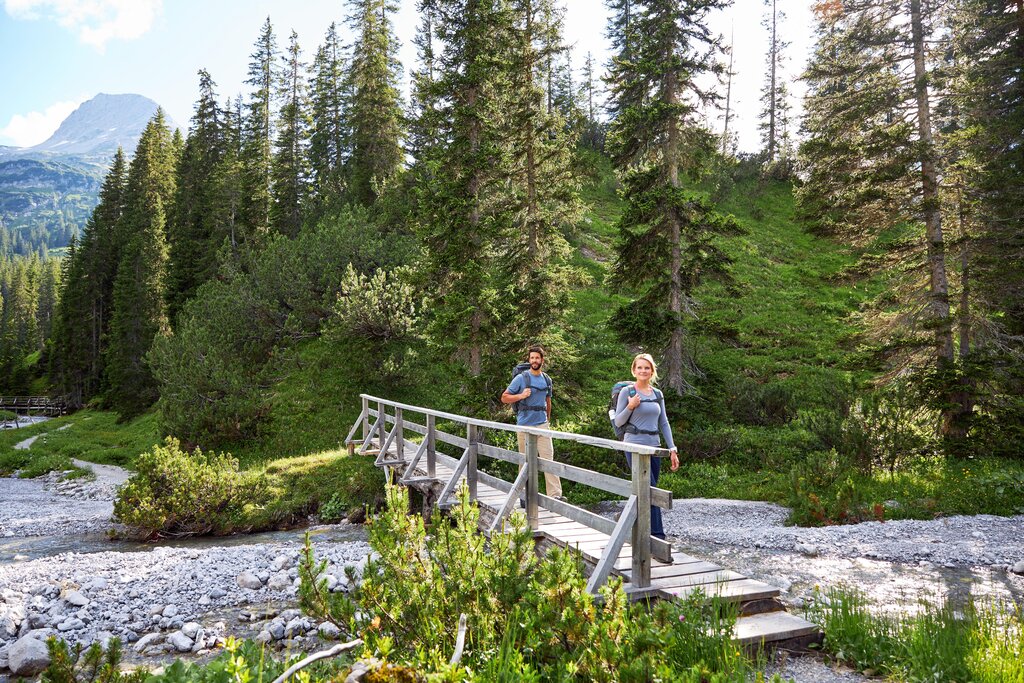 Der Weg windet sich schließlich in Serpentinen hinunter zum Fluss, wo dich das Rauschen des Lechs empfängt. Die Natur zeigt sich hier in ihrer ganzen Vielfalt: blühende Wiesen, stille Waldstücke, der Fluss, der sich seinen Weg bahnt. Am Nachmittag erreichst du Steeg. Die letzten Kilometer legst du heute mit dem Bus zurück – entspannt und mit Zeit, die Landschaft in aller Ruhe zu genießen.