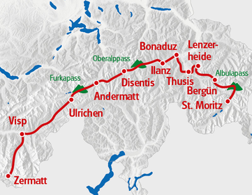 Auf der Strecke des Glacier Express wechseln Baustile und Landschaftsformen. Auf Pizokel folgt Cholera. Wer Bündner Dialekt und Walliser-Diitsch versteht, beisst sich an Rumantsch die Zähne aus. All diese Details erschliessen sich Ihnen erst, wenn Sie nicht Express, sondern langsam von St. Moritz nach Zermatt reisen. Zum Glück bekommt die berühmteste Bahnstrecke der Welt mit der Glacier Bike Tour einen kleinen Bruder, der für diese Strecke das richtige Tempo anschlängt. Und während Zugreisende die Bergwelt der Schweiz durch Panoramafenster begutachten, sind Sie bei der Fahrt von St. Moritz nach Zermatt mittendrin statt nur dabei.