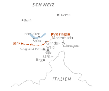 Entdecken Sie die alpine Schweiz von ihrer schönsten Seite: Am Bärentrek sind Sie auf einer einzigartigen Route über spektakuläre Pässe und entlang grandioser Gletscher unterwegs. Die Via Alpina führt Sie durch Täler und Schluchten, vorbei an den drei „stolzen Schweizern“ Eiger, Mönch und Jungfrau bis in den Schweizer Ferienort Adelboden-Lenk. Bären werden Sie zwar mit größter Wahrscheinlichkeit nicht begegnen, da diese Trekkingtour den Namen der Zeit verdankt in der die Strecke nur von wilden Tieren passiert werden konnte. Doch auch heute ist der Bärentrek kein Spaziergang, da es einige Pässe zu überqueren gilt. Auf den Höhen und Gipfeln werden Sie jedoch für Ihren alpinistischen Einsatz belohnt. Lassen Sie die vollkommene und imposante Schönheit der Alpen auf sich wirken.