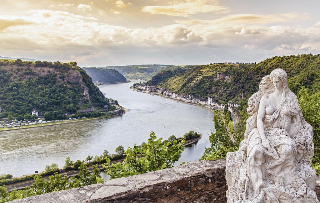 <Das Herz des Mittelrheintals erwartet Sie mit verschlungenen Pfaden, traumhaften Ausblicken und sagenhafte Burgen. Der berühmteste Felsen am Rhein, der Loreley-Felsen steht ebenfalls auf Ihrem Programm, sowie der Dreiburgenblick auf Burg Katz, Maus und Rheinfels. Ein krönender Abschluss Ihrer Tagesetappe, bevor Sie St. Goarshausen erreichen. -