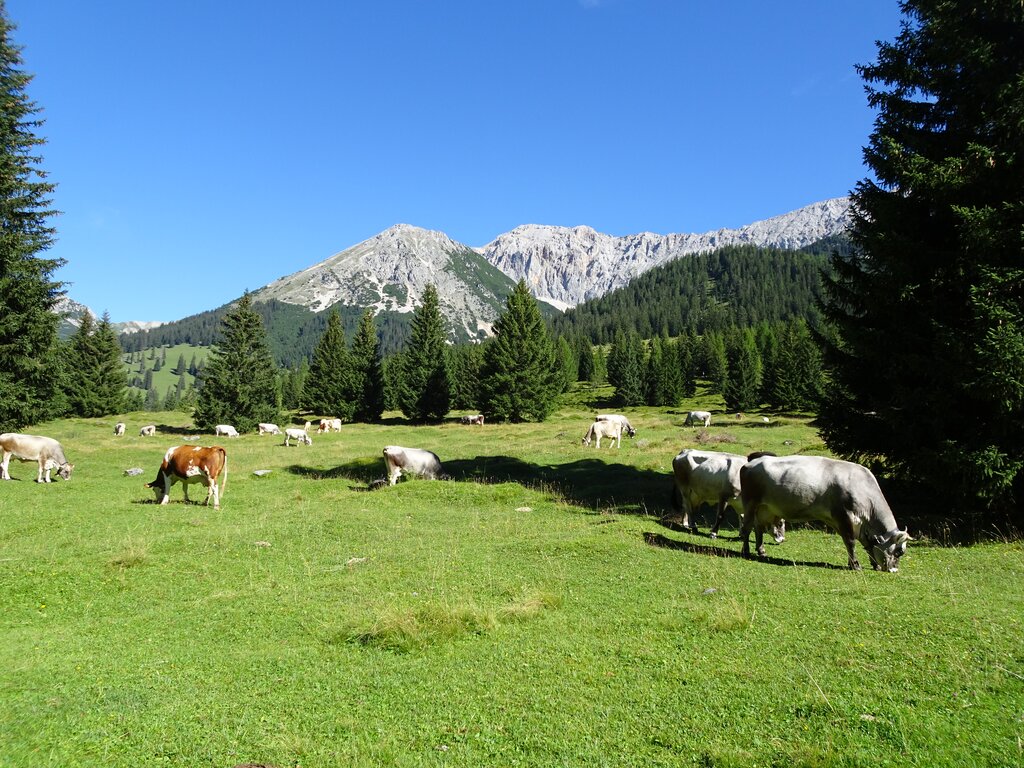 <Kurze Busfahrt ins Gaistal. Der Almsommer im Gaistal ist vor allem für die Haflinger, das Braun- und Grauvieh und die schottischen Galloway Rinder ein Traum. Sie folgen dem Ganghofer Weg hinein zu den Almlandschaften und hinauf zum Übergang zur Ehrwalder Alm. Eine Kulisse, wie für einen Heimatfilm bestellt und einst Rückzugsort des bayerischen Schriftstellers Ludwig Ganghofer. Per Seilbahn geht es ins Tal und weiter nach Ehrwald. -
