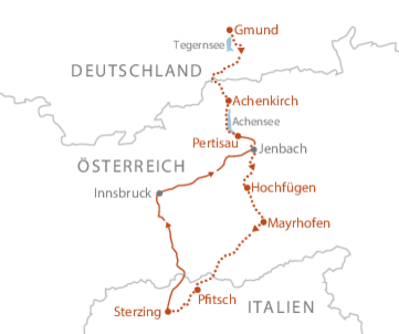 Erkunde die Alpen auf deiner eigenen Route von Tegernsee bis nach Sterzing. Du beginnst in den sanften Hügeln der bayerischen Voralpen und bewegst dich weiter durch die imposanten Landschaften des Karwendel und Rofan. Durch die eindrucksvollen Zillertaler Alpen führt dein Weg schließlich nach Südtirol. Die Routen sind komfortabel, meist ruhig und laden dazu ein, die Natur ganz bewusst zu erleben. Dein Gepäck reist entspannt voraus, während du dich auf charmante Hotels und gemütliche Gasthöfe freuen kannst, die deinen Aufenthalt besonders angenehm machen.