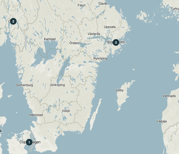- Zug: Oslo – Stockholm (2. Klasse mit Sitzplatzreservierung)
