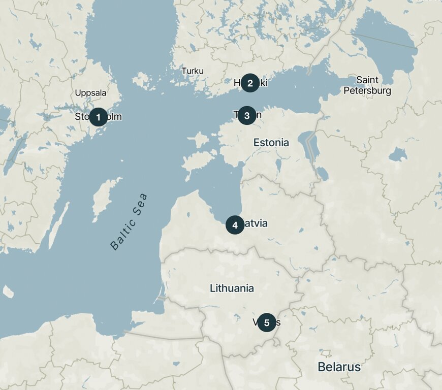 Erkunden Sie die faszinierenden nordischen und baltischen Hauptstädte auf dieser zehntägigen Reise rund um die Ostsee. Reisen Sie komfortabel mit der Nachtfähre zwischen Stockholm und Helsinki und setzen Sie die Reise mit dem Bus durch Tallinn, Riga und Vilnius fort. Jede Stadt bietet ihre eigene einzigartige Mischung aus Kultur, Architektur und Geschichte – perfekt kombiniert mit Freizeit, um die Region unabhängig oder durch optionale geführte Aktivitäten zu entdecken.