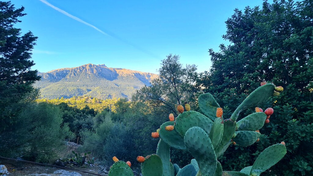 Die erste Wanderung führt dich durch das "Sonnental" Mallorcas: so genannt ist die Senke von Soller, die sich hauptsächlich dem Anbau von Zitronen und Orangen widmet. Eingekesselt ist das Tal von beeindruckenden Gipfeln wie dem Puig Migdia, dem L´Ofre oder dem Cornador. Die Tour startet direkt von der Haustür des Hotels und führt dich zuerst nach Port Soller. Wer möchte und wenn es die Temperaturen erlauben, wagt einen Sprung ins Meer. Die Variante im Schwierigkeitsgrad 3 nimmt die Straßenbahn zurück nach Soller und wandert durch den Weiler Binibassi zurück nach Fornalutx.