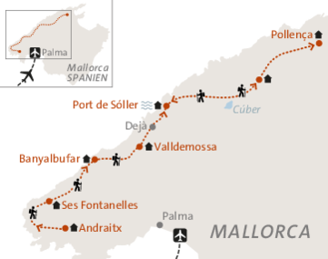 <Du reist individuell auf die Sonneninsel Mallorca an und startest so dein persönliches Wanderabenteuer.