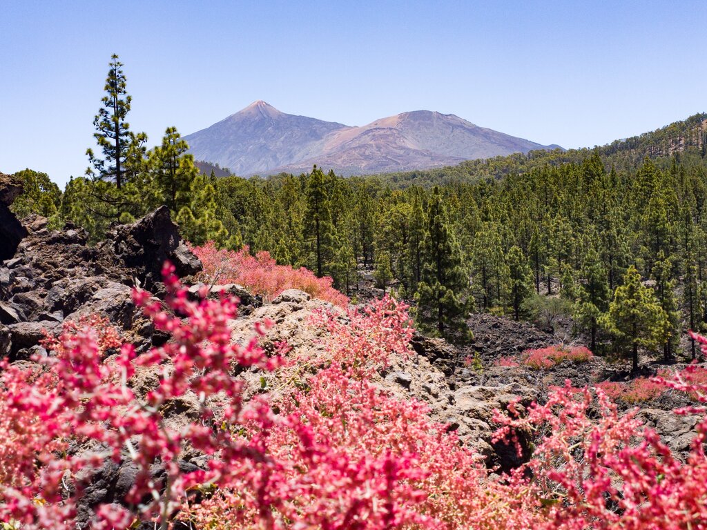 <Nach einem kurzen Taxitransfer setzt du den Rucksack auf und startest bei Aguamansa. Auf schmalen Waldpfaden und ehemaligen Forstwegen wanderst du durch Loorbeerwälder entlang des Fernwanderwegs GR131. Der Weg wird steiler, und mit jedem Schritt öffnet sich die Landschaft weiter: vor dir der majestätische Teide, links der Gebirgszug Cordillera Dorsal, rechts das Orotava Tal mit Blick bis zum Meer. Rastplätze laden dich immer wieder ein, den Atem der Höhe zu spüren und die Aussicht zu genießen. Je höher du steigst, desto rauer die Vegetation: knorrige Pinien, zarte Gipfelrosen und die seltene Guanchen-Rose leuchten zwischen den Steinen hervor. Ab dem Aussichtspunkt Alto de Guamazo ist das Etappenziel nicht mehr weit und El Portillo kommt in Sicht. Damit beginnt die Grenze zum Teide Nationalpark und der Blick auf den Teide, die Caldera (Krater) und die Berge Montañas de Chasó wird frei. Hier kannst du im Restaurant einkehren oder im Besucherzentrum mit botanischem Garten noch tiefer eintauchen, bevor dich der öffentliche Bus zurück nach La Orotava bringt (Linie 348, für ca. 6 €/Person).