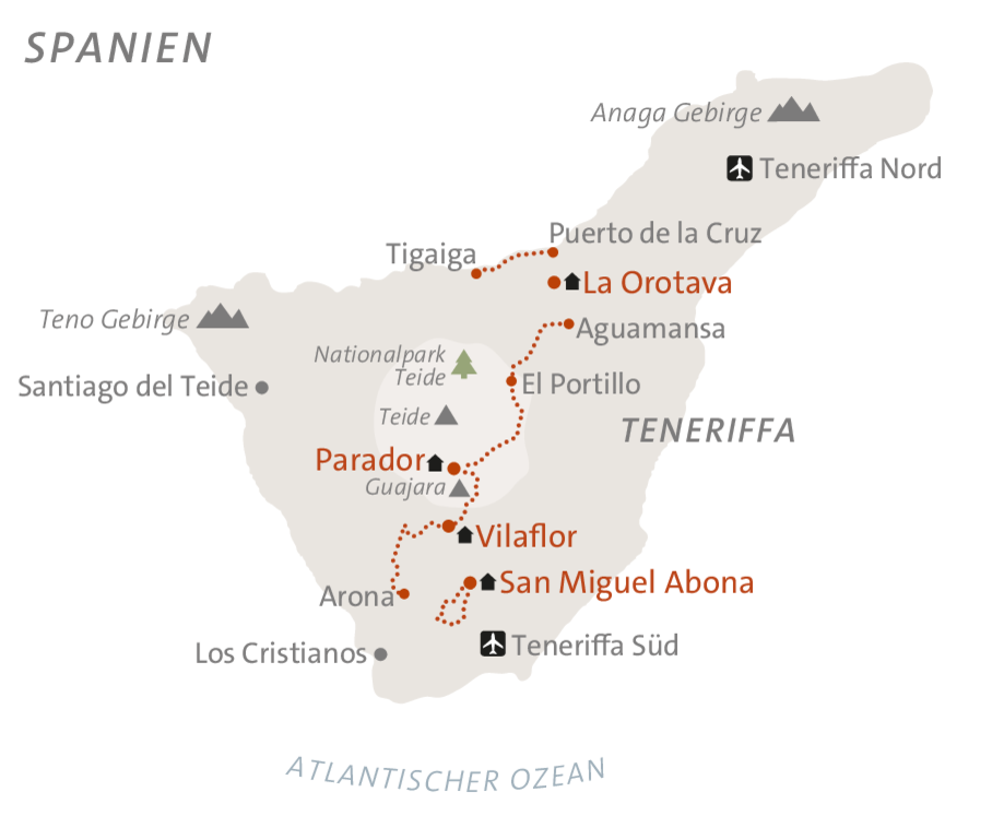 Mach dich bereit für ein Inselabenteuer zu Fuß über die vielseitige Insel Teneriffa: Du wanderst über Küstenpfade im Norden, durch grüne Wälder im Orotava Tal und faszinierende Vulkanlandschaften im Teide Nationalpark. Tiefe Schluchten, weite Lavameere und charmante Dörfer begleiten dich auf jedem Abschnitt. Unterwegs eröffnen sich beeindruckende Ausblicke auf Berge wie den Guajara, spannende Felsformationen und das glitzernde Meer. Du entdeckst die Natur und Geschichte Teneriffas intensiv und individuell – ein Erlebnis voller beeindruckender Panoramen und unvergesslicher Momente, die nur zu Fuß erfahrbar sind.