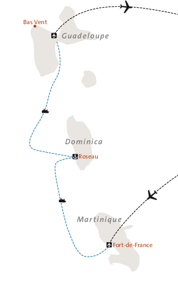 Drei Perlen der Karibik: Martinique – Dominica – Guadeloupe. Üppige Regenwälder mit faszinierender Vegetation, beeindruckend bizarre Vulkanlandschaft mit rauchenden Kratern und blubbernden Schlammtöpfen, glasklare, erfrischende Wasserfälle und Bergseen sowie zauberhafte Strände machen diese Wanderreise zu einer karibischen Symphonie der Sinne. Entdecke diese drei Inselparadiese im eigenen Rhythmus. Du kannst dein Wanderprogramm flexibel gestalten, an den schönsten Aussichtspunkten verweilen und die karibischen Strände genießen, so lange du willst.