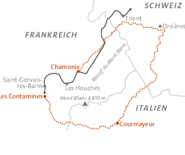 Der Mont Blanc ist nicht nur der höchste Berg Westeuropas sondern auch einer der schönsten Gebirge der Alpen. Und sein Ruf hält, was er verspricht: Auf dieser Tour von Frankreich in die Schweiz und nach Italien haben Sie Gelegenheit dieses fantastische Gebirge von all seinen Seiten und in jedem Licht zu bewundern, Sie wandern durch Täler und über Pässe und haben immer die herrlichsten Gletscher und Gipfel der Alpen vor Augen.