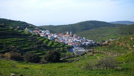 <Nach dem Frühstück beginnt die erste Wanderung in der nahe gelegenen Stamanti's Bar. Über das Inselplateau rund um Hora geht es hinauf zu den Ruinen der byzantinischen Orias Burg. Vorbei an Pinien-, Oliven-, Zitronen-, Feigen- und Granatapfelbäumen erreichen Sie die Burg mit einer eindrucksvollen Aussicht bis zur Insel Kea. Auf dem Rückweg kommen Sie zur mittelsteinzeitlichen Grabungsstätte und den heißen Quellen Loutras vorbei. Eine eindrucksvolle Wanderung durch die verschiedenen Epochen der Menschheitsgeschichte. Nach einem erlebnisreichen Tag gibt es Abendessen in Hora. -