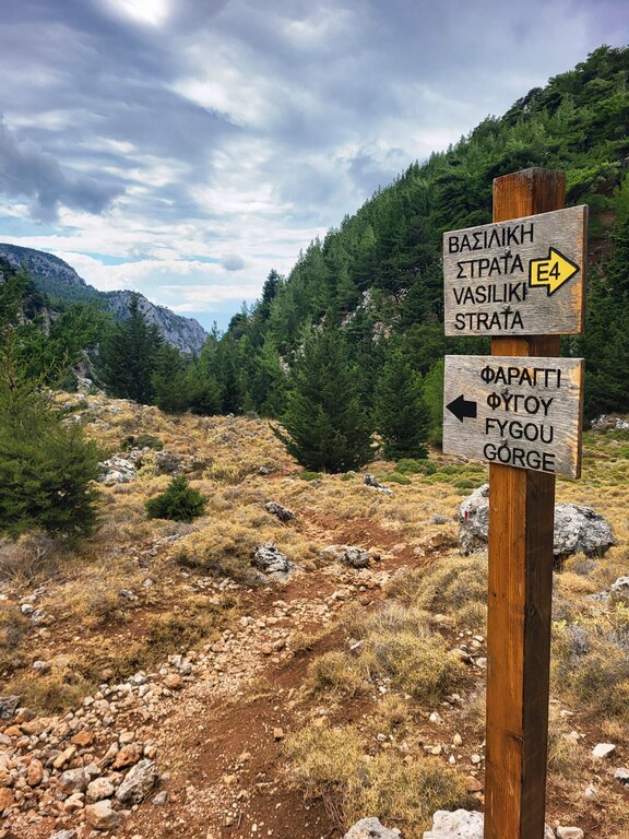 <Heute durchquerst du die beeindruckende Agia-Irini-Schlucht, deren tiefer Einschnitt von Pinien, Platanen und Oleander gesäumt ist. Im Schatten der Bäume wanderst du rund 1.000 m bergauf und erreichst schließlich das faszinierende Omalos-Plateau, wo sich Pinien-, Ahorn- und Eichenwälder vor imposanten Berggipfeln abwechseln. Dein Gepäck wird direkt nach Agia Roumeli transportiert – nimm also das Nötigste für die heutige Etappe in deinem Tagesrucksack mit.