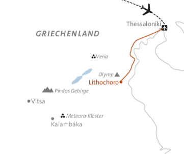 Zu den schönsten Gipfeln Nordgriechenlands zählt der Olymp - er ist der höchste, er ist der Bekannteste und er gilt als Sitz der griechischen Götter. Vom Bergsteigerdorf Litochoro aus startet Ihr dreitägiges Trekking durch die Berge des Olymp. Sie schlafen in der Berghütte Spilios Agapithos und erleben den Gipfelsieg am höchsten Punkt Griechenlands. Nach dem Besuch im Reich der Götter, bietet sich eine entspannte Verlängerung am Meer an. Nach einer Übernachtung in Litochoro, einem netten Dorf am Fuße des Olymps, wandern Sie zwei Tage auf dem mystischen Olymp und übernachten in einem Schlafsaal in der Berghütte Agapithos. Am ersten Tag steigen Sie hoch von Prionia entlang des Flusses Enipeas zur Berghütte Agapithos. Der Mytikas ist mit 2918m der höchste Gipfel der Bergkette des Olymps. Der felsige und steile Gipfel kann aber nicht einfach bestiegen werden, sondern erfordert Kletterausrüstung. Darum halten wir uns an den Skolio Gipfel (2911 m): Die Aussichten sind genauso schön und es gibt einen Wanderweg dorthin. Sie befinden sich hier im Hochgebirge mit der entsprechenden Flora und Fauna einer alpinen Landschaft. Und… die Götter des Olymps sind bei Ihnen! Am zweiten Tag wandern Sie entlang der Zonaria zur Hochebene Mousson (= Musen) und steigen über die Petrostrougka-Hütte nach Gortsia ab.