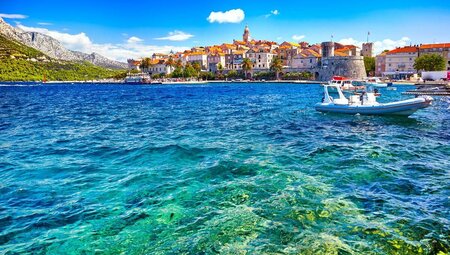 <Am Morgen Bootsfahrt zur Insel Korčula. Transfer zum Dorf Pupnat und Beginn der Wanderung in Richtung der Ortschaft Korčula beginnen. Korčula ist die Heimatstadt von Marco Polo und erlebte im 14. und 15. Jahrhundert ein rasantes Wachstum durch seine geschickten Steinmetze. Die Stadt wurde wohlhabender und wuchs zur heutigen, aber immer noch überschaubaren Größe an. Genießen Sie den Abend in der Altstadt.