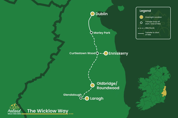 <Ihre Wanderung auf dem Wicklow Way beginnt im südlichen Vorort von Dublin. Vom Marlay Park aus wandern Sie durch wunderschöne Parklandschaften, bevor Sie die Dublin Mountains überqueren und das malerische Dorf Enniskerry erreichen.