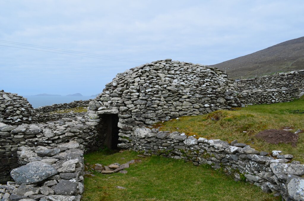 <Kaum hast du Dingle verlassen, beginnt eine der eindrucksvollsten Etappen der Reise. Du wanderst durch blühende Fuchsienhecken und vorbei an der Bucht von Ventry. Der Weg steigt an den Hängen des Mount Eagle empor – mit weiten Blicken zurück auf die Dingle Bay und hinüber zum Ring of Kerry. Inmitten dieser stillen Landschaft entdeckst du die alten Bienenkorbhütten von Fahan, Relikte früher christlicher Siedlungen. Schließlich öffnet sich vor dir ein Panorama wie gemalt: Slea Head und die schroffe Inselwelt der Blasket Islands, scheinbar das letzte Stück Irland vor dem Atlantik. Dein Tagesziel ist das kleine, abgeschiedene Dorf Dunquin.