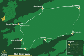 Beginnen Sie Ihr Abenteuer in der lebhaften Stadt Killarney, dem perfekten Tor zu Irlands bezauberndem County Kerry, auf unserer 8-tägigen Selbstgeführten Wanderreise entlang des Kerry Way. Diese Tour lädt Sie ein, eine Reihe ikonischer Landschaften zu durchqueren – von den dramatischen Weiten des Black Valley bis zur friedlichen Schönheit von Glencar, wo alte Steinstrukturen und grüne Wiesen Geschichten aus Irlands bewegter Vergangenheit erzählen. Ihre Reise führt Sie weiter durch das malerische Küstendorf Glenbeigh, wo weite Ausblicke auf den Atlantik die Bühne für ein unvergessliches Erlebnis bereiten. Die Route bringt Sie anschließend nach Cahersiveen, eine Stadt voller lokaler Legenden und historischer Anziehungskraft, die mit Panoramablicken und einem authentischen Einblick in das ländliche irische Leben aufwartet. Während Sie dem Kerry Way folgen, entdecken Sie den maritimen Reiz von Waterville und das faszinierende Erbe von Caherdaniel – jedes Ziel fügt Ihrem Abenteuer ein einzigartiges Kapitel hinzu. Anschließend führt Sie der Weg durch Sneem, bekannt für seine lebhaften Straßen und seine herzliche Gemeinschaft, bevor Sie in die historische Stadt Kenmare gelangen. Hier verschmelzen moderner Komfort und alte Traditionen nahtlos miteinander – Sie können lokale Küche genießen, Kunsthandwerksläden erkunden und in die reiche Kultur der „Emerald Isle“ eintauchen. Die letzte Etappe Ihrer Wanderung bringt Sie zurück nach Killarney und schließt somit einen Kreis, der den rauen Charme, die atemberaubenden Landschaften und den unerschütterlichen Geist des County Kerry perfekt einfängt. Entwickelt für erfahrene Wanderer ebenso wie für abenteuerlustige Einsteiger, beinhaltet unsere 8-tägige Selbstgeführte Wanderreise entlang des Kerry Way detaillierte Routenbeschreibungen, lokale Insidertipps und vorab arrangierte Unterkünfte, um eine reibungslose und unvergessliche Reise zu gewährleisten. Erleben Sie die Freiheit, in Ihrem eigenen Tempo zu erkunden, während Sie versteckte Schätze und berühmte Wahrzeichen entlang eines der bekanntesten Fernwanderwege Irlands entdecken. Buchen Sie Ihre Tour noch heute mit Ireland Walk Hike Bike und finden Sie heraus, warum der Kerry Way ein absolutes Muss für alle ist, die ein authentisches irisches Outdoor-Abenteuer suchen.
