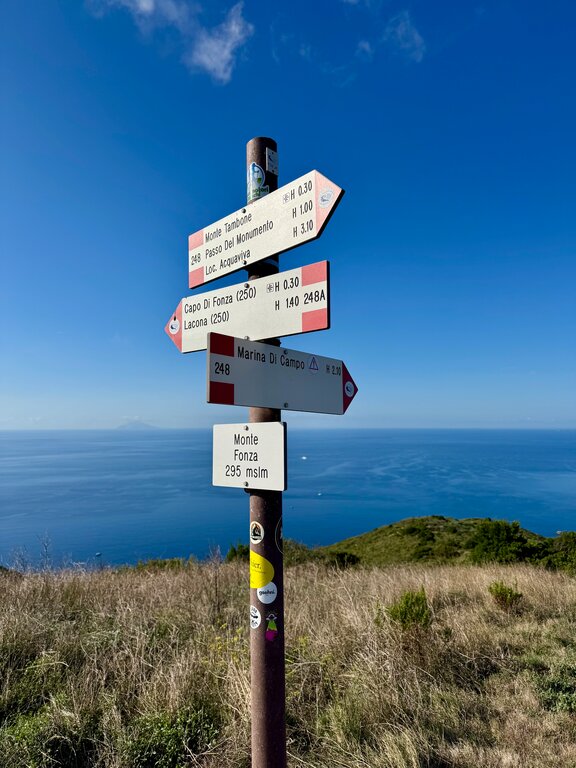 <Die heutige Wanderung führt hinauf auf den Monte Fonza, von wo aus Sie einen tollen Blick auf den gesamten Golf von Marina di Campo und auf die Laconabucht auf der anderen Seite des Berges haben. Sie haben die Möglichkeit, an der Bucht von Marina di Campo oder an einer kleinen Bucht mit Kiesstrand in der Nähe des WP13 schwimmen zu gehen. -