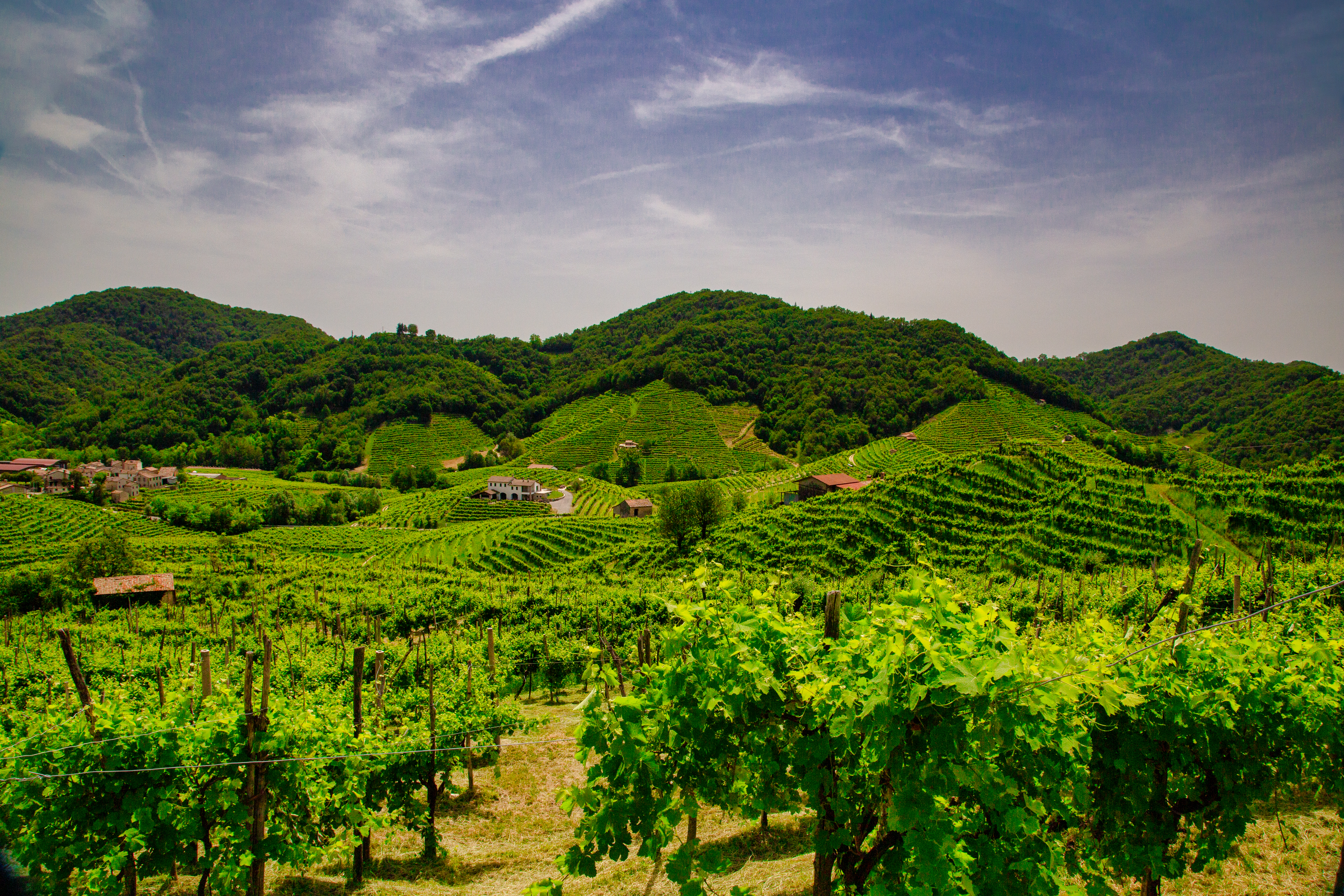 Die Prosecco Region ist gekennzeichnet von kegelförmigen, üppig bewachsene Rebhügel, eingerahmt durch die trevisanischen Alpen im Norden und die Piave-Ebene im Süden. Es ist ein Land voller Faszination, Geschichte und Kunst, mit oft unerwarteten Überraschungen in den Tälern oder in den vielen, hier und da verstreuten, Flecken und Ortschaften. Man verirrt sich gerne auf der Suche nach den tausendjährigen Spuren des Menschen und seiner Kultur. Der Weinbau hat hier uralte Wurzeln. Die erste schriftliche Darlegung, die mit dem Prosecco verbunden ist, geht auf 1772 zurück. Zwar gibt es überall in Italien Perlweine, doch ausschließlich die Erzeugnisse dieser Region, die von der typischen Prosecco-Traube stammen dürfen den wohlklingenden Namen „Prosecco“ tragen.