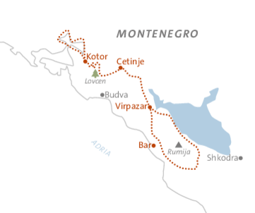 Entdecken Sie die wilde Schönheit Montenegros mit dem Fahrrad. Die Tour bringt Sie zu den Höhenpunkten der montenegrinischen Küste und des Nationalparks Skadarsee. Sie durchqueren verschiedenste Landschaften, immer begleitet mit wunderschönen Panoramablicken. Sie übernachten in kleinen Familienhotels in den zentralen Orten, in denen Sie in guten Restaurants den Tag ausklingen lassen können. Ihr Gepäck reist unabhängig von Ihnen von Ort zu Ort. Ihnen bleibt der Genuss am Radfahren, der Kulinarik und der vorbeiziehenden Landschaft Montenegros.