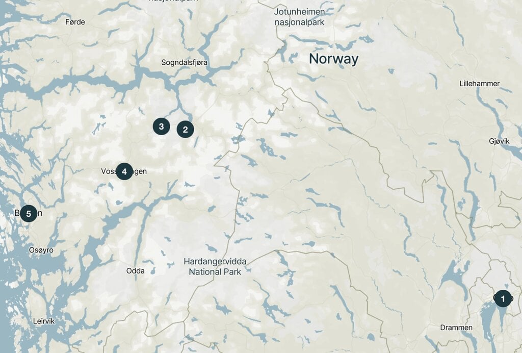 Diese Tour führt durch einige der spektakulärsten Landschaften im Fjordnorwegen und bietet unvergessliche Erlebnisse auf der Bergenbahn, der Flåmbahn, dem Aurlandsfjord, dem Nærøyfjord und der dramatischen Stalheimskleiva-Straße. Ideal für alle, die viele der Highlights Norwegens in relativ kurzer Zeit erleben möchten.