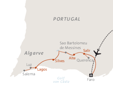 Der Transfer zum Flughafen Faro am Ende der Reise dauert ca. 1 Stunde.