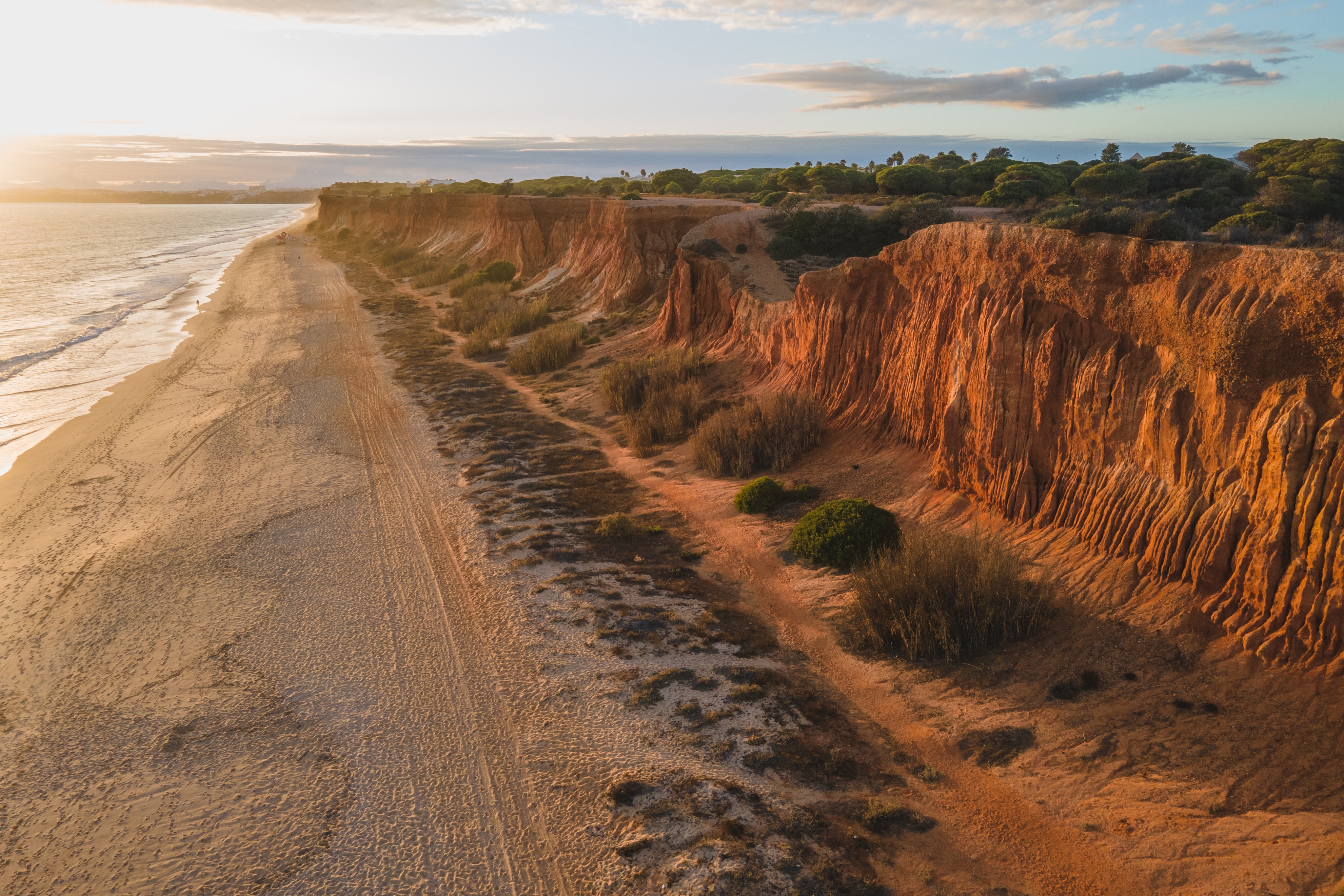 <Die Fahrradtour beginnt in Vilamoura und führt entlang der malerischen Küste der Algarve. Über eine kleine Brücke verlassen Sie Vilamoura underreichen den atemberaubenden Sandstrand von Falesia. Auf einem idyllischen Holzsteg radeln Sie entlang des Strandes und genießen dabei den Blick auf das türkisfarbene Meer. Die Route führt Sie weiter durchden Ort Olhos de Água und weiter durch das lebendige Albufeira, dasheute ein beliebter Touristenort ist. Hier können Sie die engen Gassenerkunden, traditionelle Restaurants besuchen und das bunte Treiben in den Straßen beobachten. Weiter geht es nach Galé, einem malerischen Küstenort mit beeindruckenden Klippen und versteckten Sandbuchten. Auf einem langen Holzbretterweg durch das geschützte Dünengebiet "Salgados" radeln Sie weiter zum Ort Armação de Pêra, Ihrem letztenStop für diesen Trip. Hier sollten Sie unbedingt die Kapelle "A Nossa Srªda Rocha" besichtigen, die auf einer Klippe weit ins Meer hinausragt.