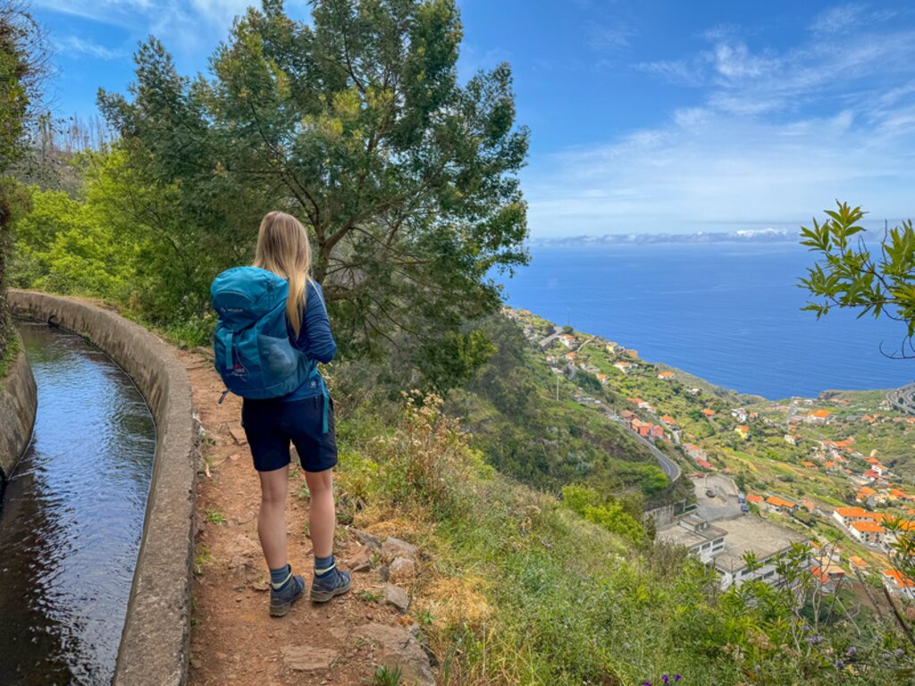 <Auf der Levada do Caniçal geht es hinauf zum Boca do Risco, einem spektakulären Passübergang, welcher weit über der Steilküste liegt und Sie auf einen schmalen Küstenpfad führt. Der Saumweg verläuft hoch über dem Meer und endet in Porto da Cruz, wo ein Bad im Salzwasserbecken und ein Spaziergang am schwarzen Strand warten.