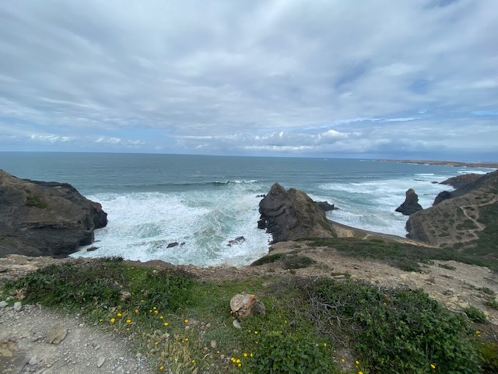 <Die erste Etappe führt dich entlang der weiten Sandstrände von Ilha do Pessegueiro, Aivados und Malhão – einer der beeindruckendsten Küstenabschnitte der Region. Zwischen den langen Stränden öffnen sich immer wieder kleine, fast unberührte Buchten, die versteckt in der Dünenlandschaft liegen. Du folgst der Küste mit ständigem Blick auf den Atlantik und wanderst durch sanfte Dünen bis in das charmante Städtchen Vila Nova de Milfontes.