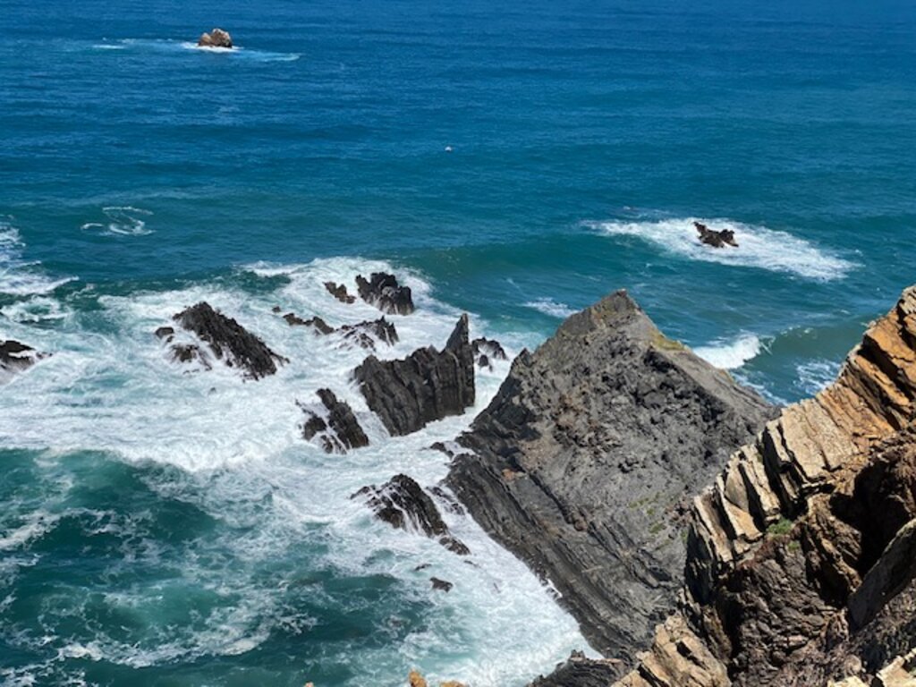 <Heute wechseln wir zurück an die Küste und erwandern einen der schönsten Abschnitte des Fischerpfads. In leichtem Auf und Ab folgt der Weg der wilden Atlantikküste mit ihren steilen Klippen, tiefblauen Buchten und versteckten Sandstränden. Das Rauschen des Ozeans begleitet uns den ganzen Tag, und immer wieder laden kleine Strände zu kurzen Pausen ein. Die Etappe endet in Odeceixe, einem malerischen Ort an der Mündung des Seixe Flusses, umgeben von grünen Hügeln. Hier kannst du in gemütlichen Cafés oder Restaurants die portugiesische Küche genießen und den Wandertag entspannt ausklingen lassen.
