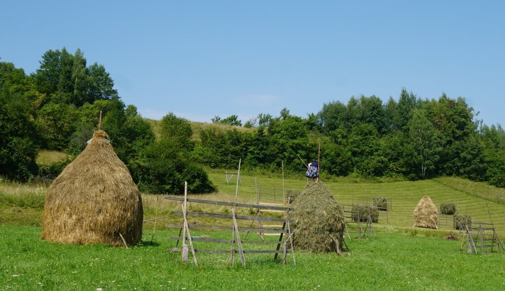 <Wanderung durch eine Bilderbuchlandschaft zum traditionellen Dorf Botiza. Auf Ihrem Weg sehen Sie mit Heu beladene Pferdewagen und Männer und Frauen mit Strohhüten, die mit Sense und Rechen auf dem Feld arbeiten. Anschließend Rundgang durch das Dorf, zur alten Holzkirche, dem Dorfmuseum und zu den Werkstätten, in denen immer noch ‘cergi’ (Wolldecken) hergestellt werden, wie es früher üblich war, mit traditionellen Techniken und Naturfarben.