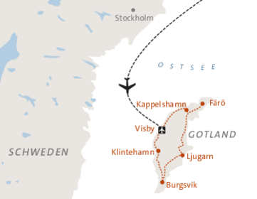 - Fluganreise: Flughafen Visby, weiter per Taxi ins Zentrum von Visby