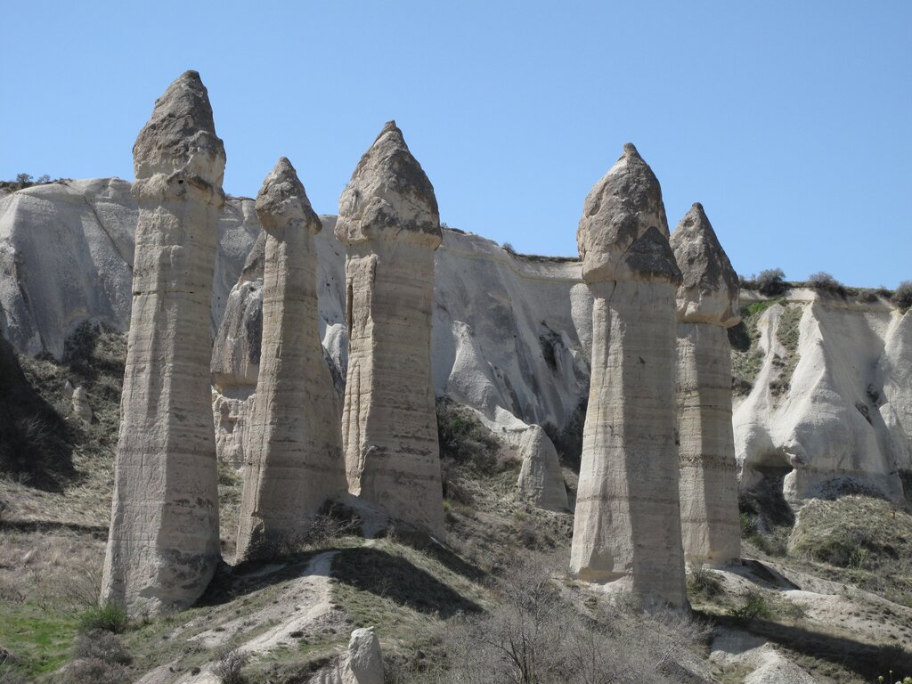 <Meist ist es ein Pfad, der Sie durch Baglidere (Das Weisse Tal) führt. Warum das Tal auch Liebestal genannt wirdbemerken Sie, wenn Sie vor der ersten Gruppe von Feenkaminen stehen. Nach dem Weissen Tal wandern Sie hinauf zur Uchisar Burg. Der Anstieg zur Burg lohnt sich, denn der Rundblick von oben ist einmalig. Danach wandern Sie durch Uchisar hinunter zum Tauben Tal und durch das Tauben Tal nach Göreme.