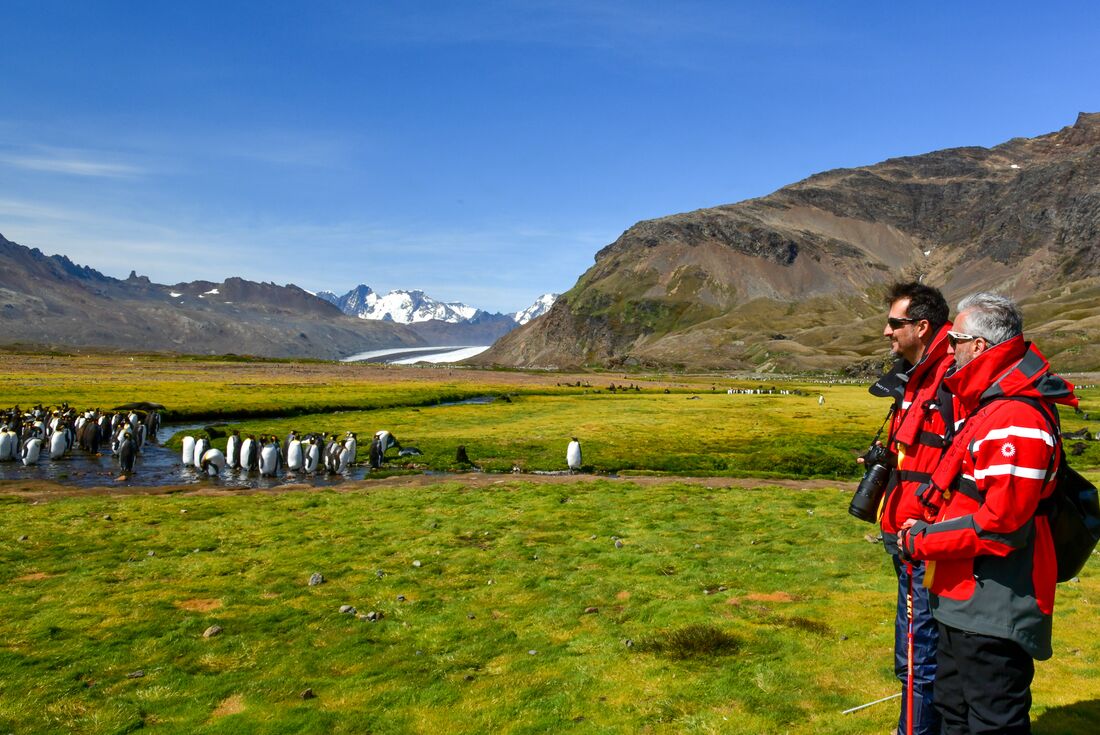 Erlebe einen Silvesterabend wie keinen anderen auf dieser epischen 23-tägigen Reise zu den Falklandinseln, Südgeorgien (auch bekannt als „Serengeti des Südlichen Ozeans“) und zum Antarktischen Kreis. Schau dir die größte Schwarzbrauenalbatros-Kolonie der Welt auf den Falklandinseln an, sieh dir Zehntausende von Pinguinen an, die auf Südgeorgien herumwatscheln, und beobachte, wie Eisberge am Horizont auftauchen, während du die Scotia-See überquerst und dich der Antarktischen Halbinsel näherst. Besuchen Sie die Grabstätte des berühmten Forschers Sir Ernest Shackleton und erkunden Sie historische Landungsstellen und wissenschaftliche Forschungsstationen. Wenn das Wetter es zulässt, können Sie zum Abschluss den Südpolarkreis bei 66°33'S überqueren, bevor Sie Ihre Heimreise durch die berüchtigte Drake-Passage antreten.