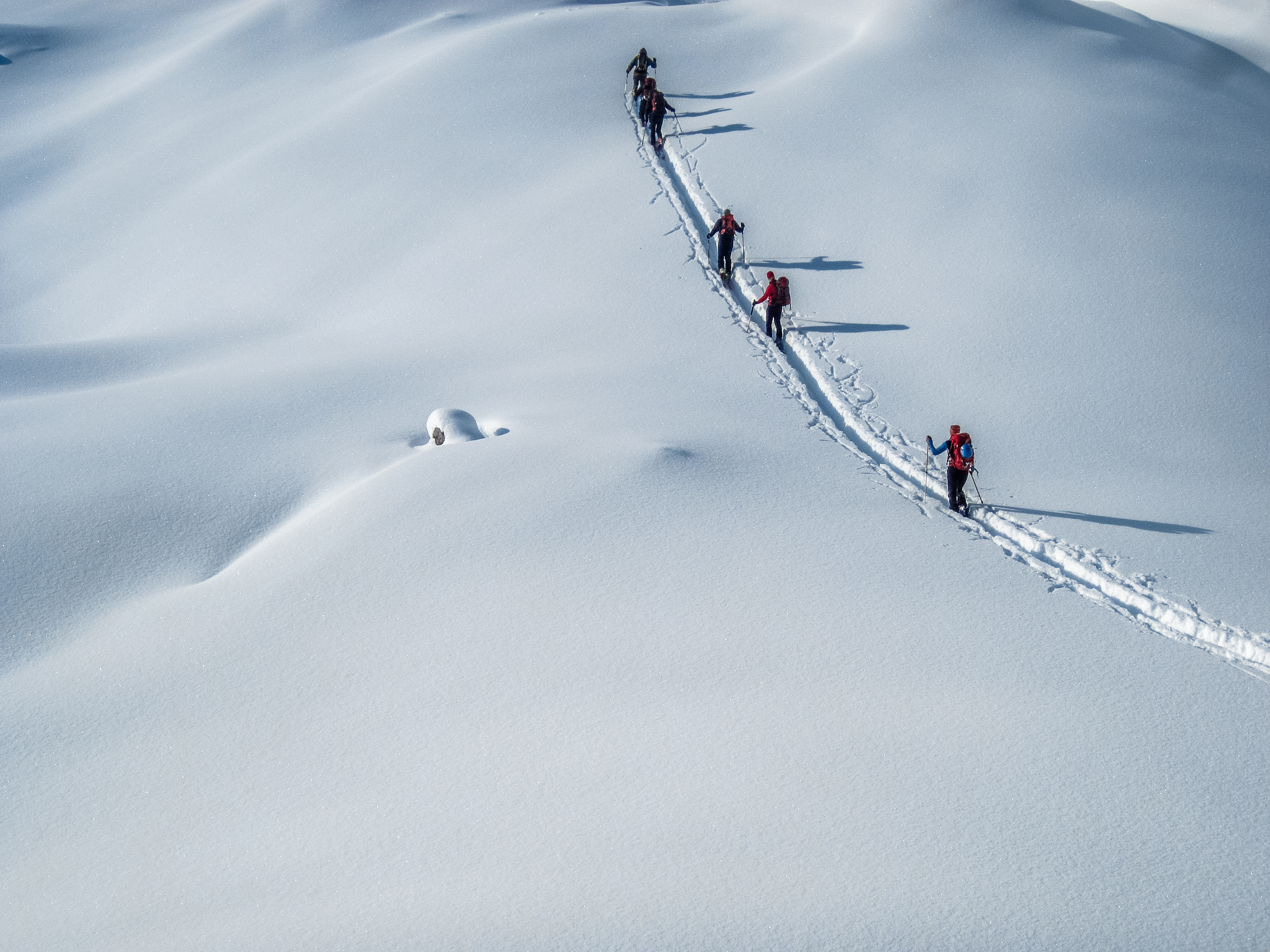 Bitte achte darauf, dass deine eigenen Ski gewachst sind und über scharfe Kanten verfügen. Benutze bitte nur moderne Tourenski.