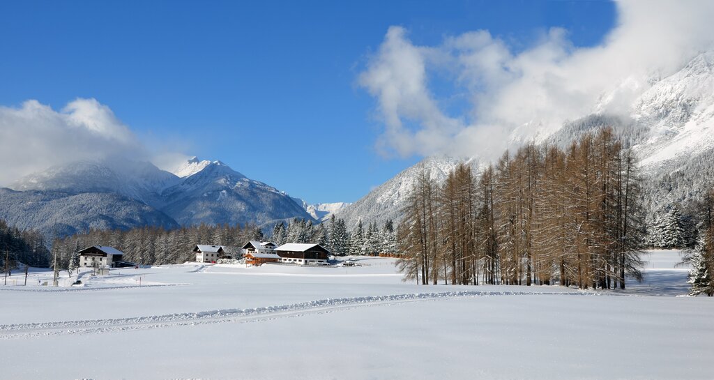 <Bequem mit dem Bus geht es nach Wildermieming. Die leichte Winterwanderung führt von Wildermieming zum Strassberghaus und zurück. Die schöne Strecke zeichnet sich durch die herrliche Tiroler Idylle aus.