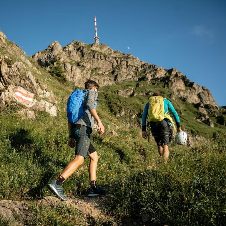Von Griesenau steigen wir auf einem aussichtsreichen Sdurch das Kaiserbachtal zur Griesner Alm auf. Immer wieder öffnet sich der Blick auf die mächtigen Felswände von Goinger Halt und Fleischbank. Über die Ranggenalm und dem Höhenweg wandern wir durch ursprüngliche Almlandschaft, bevor wir wieder zur Fischbachalm zurück ins Tal steigen. Aufstieg: 600 m - Abstieg: 600 m - Weg: 12,8 km - Zeit: ca. 5 hÜber das Stripsenjoch zum Stripsenkopf Schwierigkeitsgrad IV