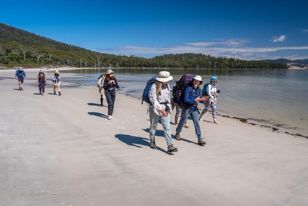 <Willkommen in Tasmanien! Dein Abenteuer beginnt in Hobart, oder Nipaluna in der Sprache der Muwinina und Palawa, den traditionellen Hütern des Landes, auf dem sich Hobart befindet. Bereite dich darauf vor, zwischen 7.30 und 8 Uhr von deiner Unterkunft in Hobart abgeholt zu werden, wo du zu deinem Willkommenstreffen gebracht wirst. Hier lernst du deine Guides kennen, holst dein Gepäck ab und nimmst an einer Reisebesprechung teil. Dann machst du dich auf den Weg zum Hafen von Triabunna und zu unserem Privatboot, das dich über die Mercury Passage nach Maria Island (Wukaluwikiwayna) bringen wird. Nach einer Anlandung am Strand kannst du dich bei einem Picknick mit Blick auf die Shoal Bay stärken, bevor du zu unserem privaten und exklusiven Casuarina Beach Camp weiterwanderst. Am Nachmittag erkundest du den Pfad durch den hohen Eukalyptuswald hinunter zur Haunted Bay. Wandere zurück zum Camp, wo ein Gourmet-Abendessen auf dich wartet, gefolgt von einer Übernachtung in den Öko-Hütten, die direkt hinter dem Strand liegen.