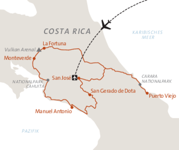 Pura Vida - wörtlich übersetzt "pures Leben" ist eine oft verwendete Redewendung der Ticos. Wer durch das kleine Land zwischen den Ozeanen reist, weiß auch schnell warum. Dichte Regenwälder, unberührte Küstenlandschaften, mächtige Vulkane und eine artenreiche Tier- und Pflanzenwelt erwarten den Besucher und vermitteln gepaart mit der Lebensfreude der Einheimischen, dieses Pura Vida auf Schritt und Tritt. Wir wandern durch die schönsten Naturreservate des Landes, lauschen den Stimmen des Dschungels, beobachten exotische Tiere und baden an den schönsten Stränden am Atlantik und Pazifik.